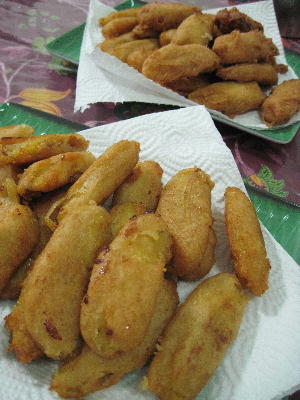 英会話の先生が教えてくれたインドのティータイムスナック2種。甘いのと甘くないの。ピサンゴレン(揚げバナナ)とチェコドック。そしてドリンクは先生直伝のスペシャルバージョン!マサラティーのテッタレ。どれも簡単でバリエーションが利きそうなお手軽おやつ。揚げバナナは小さくて甘みの強いモンキーバナナ?を使うのがベスト。今回は形そのままで揚げたけど潰してもOKだって~。チェコドックはイカンビリス味の粉に細いネギを混ぜ込んでシンプルに。これをタイチリソースに付けて食べるんだけど、まぁ~おつまみに最適なお味!お酒が進みます。子供達も大好きで昨日も作っちゃった♪試しに実験。ごぼう&ネギと人参&コーン。具を入れ過ぎると硬くなるので要注意。ごぼうの方はタイチリソースがベストマッチ。人参の方はコーンが入ってる分少し甘めなのでケチャップよりもからしマヨネーズの方が合うかな。テッタレもコツを掴めばちぁ~ゃんと泡立つ♪(このカップ買っちゃいました!)今度は甘い方も色々試してみよっっと。バナナと相性が良いのはマンゴー?ピーチ?