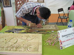 チョンカックを取りにクラフトフェアの会場へ。年に1回3月に開かれるこのイベント、マレーシア全土からクラフトマン達が集結する。バティック、木彫り、皮製品、籠、焼き物、アクセサリー等、決して安くは無いけどユニークで可愛い物産が手に入るのである。この日は最終日だったので皆早々に店じまい。ドリアンみたいな形の可愛い小物入れもずーっと気になっていたカラフルなゴザも半額にしてくれました。このゴザ、手荷物で持って帰れるかな…ヨガマットより大きいぞ~
