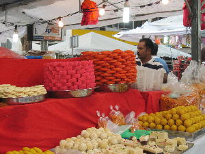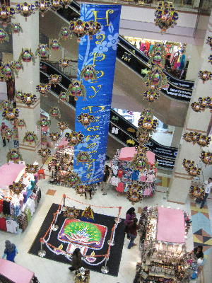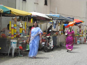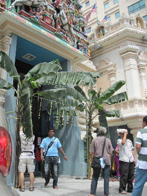 10月26日はディパバリ。光の神を称えるヒンズー教のお祭りである。マレーシアではハリラヤ、チャイニーズニューイヤーと並ぶ3大祭りの一つ。ディパバリ前の約1ヶ月、インド人街はどの店も美しく装飾が施され生地屋などは破格の値段でバーゲンを行う。この時期のインド人街はと~ってもと~っても楽しい!のでありますっ♪連日屋台が立ち並びドア飾りやカード、お菓子なんかも売ってます。私はこの可愛いドア飾り買いに3週連ちゃんでインド人街通ってしまった…。ディパバリ当日のヒンズー寺院では、普段より3割り増し位のキラキラ度の美しいサリーを身にまとい、髪に出来立てのジャスミンの髪飾りを付けて参拝する女性が。入り口はこんな風にバナナの木がデコレーションされてます。インドでは結婚式や祭りなど大切なセレモニーの場面では必ずバナナとマンゴーが供されるそう。(そう言えばチャイニーズニューイヤーではみかんづくしだった…)3つの国の文化の違いが一度に見れるマレーシア。他民族国家は色々あるとは思うけど、よその国から来た人間にとっては「毎日が楽しい!」これが本音だと思う。