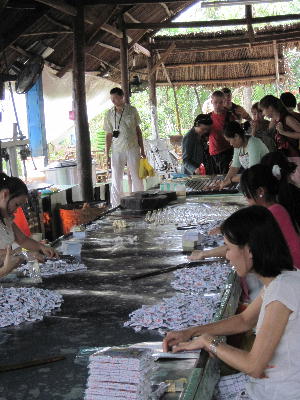 ミトーから船でトイソン島へ。馬車に乗って島をゆっくり見学する。今では数もめっきり減ったという路上の床屋やハンモックに揺られて昼寝する親子、毒サボテンやバナナ・ザボン等のフルーツも沢山生い茂っている。ジャングルクルーズの前にココナッツキャンディー工場を見学して一休み。美味しい果物や蜂蜜レモンジュースを試食する。果物には必ず塩が添えられている。我々がスイカに塩を振って食べるのと似てるかな…?蜂蜜はさらっとしててホント美味しかったです。