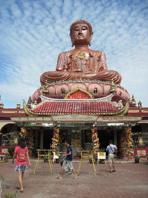 タクシーのおじちゃんが案内してくれたタイ国境近くの小さな街トゥンパッ。野良犬が沢山うろついていてKLとは雰囲気が全然違う。コタバルから車で30分位の所にあり、ムスリムが非常に少ない街でもある。訪れたのはワット・マチマランとワット・ポティピハン(寝釈迦仏)。様々な場所に施された美しい装飾や原色使いはマレーシアの仏教寺院でも見慣れていたのだが、どこか空気が違う。タイっぽいのである。参拝に来ていたお坊様達の休憩所も大きな木の下でこんな風に風が通ってとても涼しい。タイの雰囲気漂う不思議な街だった。それにしてもまぁ~凄く暑かったな…。