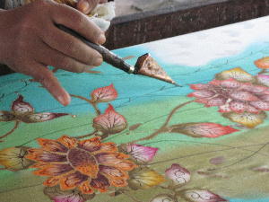 街から少し離れた場所にあるバティック工房。馬小屋の隣。コンクリートの廃墟のような建物の1階で女性達によって美しい布が染め上げられていた。ここはコタバルでも老舗のバティック工房。完全分業制。この様に美しい布は生地問屋に卸しているらしく小売はしていない。ジャンティンも縦に細長く大きめ。ささ~っと実に軽やかな手捌きで色注しも暈しの加減を知り尽くしているのか迷いが無い。熟練の技は見ていてとても勉強になる。帰りはタクシーが無いので工房のおじちゃんがマーケットまで送ってくれたし、このジャンティンが欲しくてマーケット近くのクラフト博物館で尋ね歩いてたらオーナーが自らバイクで買ってきてくれたりと今回の旅ではホント親切なマレー人に沢山助けて頂きました。ありがとね~