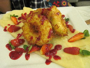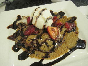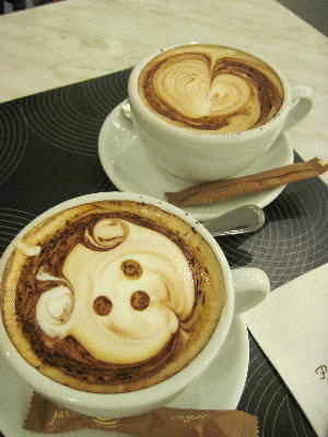 カフェ繋がりでもう一つ。ミッドバレーにあるパディントンカフェ。カプチーノを頼むと…こ~んなに可愛いラテアートのクマちゃんがやって来るのでありますよ~♪おぉなんて愛らしいの?!見てるだけで幸せな気分になります。そしてここはパンケーキの専門店でもある為、実にバリエーション豊かなスイーツが楽しめます。左はスウェーデン風、右はドイツ風パンケーキ。前者はそば粉を使ったフランスのクレープみたいな感じ。甘さ控えめで美味しいです。後者は青リンゴのフリッター?が3つ。これは油っぽくて胃がもたれる感じ。見た目は可愛いいんだけどフリッターが単なるマレーの揚げ物風で全然美味しくなかった~!これ頼んだ友達は辛そうだった…。でも店員さんは思わずバトラーズカフェを思い起こさせる程の美形男子で接客もスマート。色白ですら~っと背の高い金髪の彼が居るだけでその周辺だけ華やかな雰囲気に。マレー人じゃこの空気は絶対醸し出せないなぁ。でも待てよ、これが欧米駐在だったらきっと私は白人に囲まれた緊張と英語力の無さと容姿のコンプレックスとでいたたまれず店を出るハメに陥っていたかもしれない。色々な意味で「マレーシアで良かった~」なのかも。今度はレモンクレープを頼んでみようかな♪