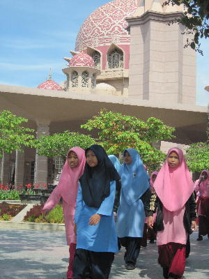 プトラジャヤにあるピンクモスク。人口的に作ったこの街は、モスクだけでなく橋も有名。確かに美しい。ブルーモスクより規模は小さいけど観光名所なだけあって売店や食堂が充実。ここの名産「川海老の唐揚げ」目当てにこの日も朝から大型バスで乗りつけた中国人ツアー客がわんさか押し寄せていた。そんなに美味しいのか?と試しに食べてみる。まぁまぁいける。けど、高いぞっ!エビ2+蟹1+イカ1で100RMとは…。中国人価格か?私もツアー客と思われたのかな?会計の時中国語で値段言われたし…。個人的にはブルーモスクの方が好きかな。ツアー客もあんまり見かけないし、売店も食堂も無いし静かに祈る人々を見ていると何だか神聖な空気が漂ってる感じがするから。お昼近くになると学校の社会見学と思しき学生達も次々来場。やっぱりプトラジャヤは抑えておくべき重要な場所なんだろうなぁ。