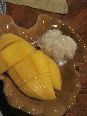 タイではトムヤムはじめ様々な料理を堪能したが、一番驚いた食べ物(というか食べ方にだけど…)がこれ。タイの伝統的なスイーツなんだって。名前忘れちゃった。普通にカットしたマンゴーにココナッツミルクで甘く甘~く炊いたもち米を乗せて食べるデザート。最初は?という感じだったんだけど、だんだん慣れてくると意外と癖になる美味しさ。沢山は食べられないけどね。デザートというより「主食」にもなりうるかと。