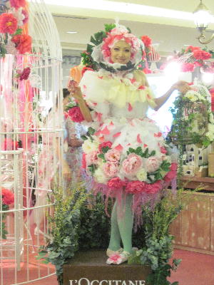 ショッピングモールに入っているロクシタンがフロアいっぱいに可愛くディスプレイされたカフェスペースで新作香水(ピオニー/シャクヤク)の宣伝。花柄のワンピースを着たコンパニオン?のお姉さん達が脇を通る女性にシュッシュッと香水を吹き付けてくれる。別格で3人ほどこんな花の妖精のような衣装を着てゆっくり手足を動かしながら優雅に踊る様子は何とも乙女チック。上品で優しいお花の香りは「ここはどこ?ヨーロッパ?」と一瞬マレーシアを忘れさせてくれるに充分な程の心地良さ。女性は年齢に関係なくこんなシチュエーション、たまらなく好き♪でしょ?イベントの効果なのか香水を買い求める女性でレジの前は長蛇の列。いつもはイモーテル派の私。でもたまにはこんなの買っちゃっても良いかなぁ~。欲しいなぁ~。