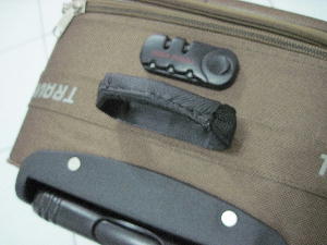 ペナンの空港で買ってすぐに取っ手が壊れた小型キャリー。やっと修理完了致しました!メーカーから取り寄せて修理するという代理店のおじちゃんに「それはやめて。変わりに絶対壊れない取っ手を付けて」とお任せでオーダーしたものの待ってる間は一体どんな取っ手が付いてくるんだろう…?お値段は?と不安と楽しみの入り混じる複雑な心境でもありました。取りに行った夫が電話口で「凄いよ!日本人の感覚じゃない。物凄くインパクトあるから」と言うものだから物凄いごっついのか?素材がヤシの葉とかで編んであるのか?と色々想像。で結果こんな感じ。一瞬「なぁ~んだ普通じゃん」と思ったのですがよ~く見ると全て手縫い!なのでありました。しかも頑丈。技術はさておき一応気を使って丁寧に作ったという気持ちが伝わる仕上げにはなっていました。全てに於いて適当精神のマレーシア。さすがにハンドメイドとは想像もつかなかったなぁ…。びっくりです。修理代は60RM(1800円しないくらい)でした。ショッピングモールのバーゲンで新しいキャリーが150RM位で売られているのを横目に見て「買った方が安上がりだったかも…」と思わなくもないけど、おかげでマレーシア生活の良い記念になりました。