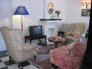 室内はこんな感じ。ファミリールームには天蓋つきのこんなお姫さまベッドも。旧い建物なので多少隙間風が気になるけど一枚多く着て寝れば寒さも気にならない程度。そこも含めトータルで雰囲気を楽しめる人にはお勧めのホテル。各部屋ごとに名前が付いていてそれぞれ内装も違うそう。この部屋はドアノブやバスルームのアメニティグッズを置くトレイ、絵画など可愛い花でいっぱいのお部屋でした。