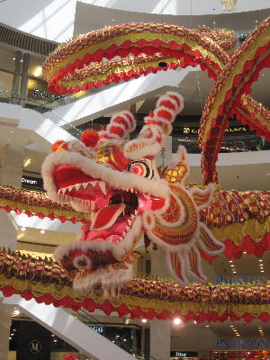 今年は辰年。チャイニーズにとって待ちに待った出産Year!確かに街を歩くと必ず数名の妊婦さんとすれ違うというくらい妊婦さんすごーく多いです。辰年生まれの特に「男子」は出世・金運共に上昇と言われており、どうやらこれにあやかっての出産ラッシュらしいです。何かと縁起を担ぐチャイニーズ。そう言えば去年は2011,11,11日の1並びに結婚ラッシュがありましたっけ…。写真はパビリオン(KLのショッピングモール)のデコレーション。ド迫力!この巨大な龍の頭を制作したのはライオンダンスの頭を作る一流の職人だそうで。
