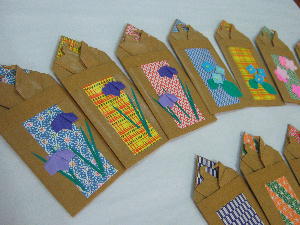 5月から週1回、英会話の先生に来て頂いてます。インド系の女性の先生で子供の扱いに慣れたとても優しい先生です。偶然にも私と同い年で、うちと同年齢のお子さんがいらしゃるとか。下の子供には宿題もちょこっと出して下さいます。一応テキストを準備して下さってますが簡単な絵本を読んだり1週間の出来事を話したり簡単な単語のゲームをしながら「話す」事を中心に、上の子供と夫には新聞記事を中心にマレーシアの国が抱える問題点も含めて色々とディスカッションしています。私はというと…マレーシア料理のレシピやお勧め観光スポットを教えて頂いたりと生活全般についてお茶を飲みながらあれこれ話しています。日本では月謝袋というものがありますがこの国にはそんな習慣、勿論ありません。基本日払いなので。でもお金を渡すのに裸でそのままというのは日本人の感覚としてどうしても出来ない私。せめて封筒にとスーパーへ買いに行ったら封筒が売ってない…。(ラッピングショップでカード類は売っているのですが…)ならば作るか!ということで大きな模造紙大の紙を探すもこれまた売ってない~。やっと書店で見つけたのが茶色くて薄~い紙。(食器を包むあの紙です)まぁ、無いよりはマシなので購入してこんな封筒を作ってみました。折角なら日本の文化も少しお伝え出来たらと思い、鶴をベースに5月は菖蒲・6月は紫陽花・7月は笹の葉(七夕)…という風に折り紙で毎月花(植物)をテーマにデコレーションしてお渡ししてます。先生もとても喜んで下さり、時にはこれが話のきっかけになって様々な国の国花にまで発展する事もあったりします。ありあわせの材料で作った粗末な封筒ですが、先生は毎週の封筒を大切に保管して下さっているようなので帰国する日まで頑張ってこれからも作り続けていこうと思います!折り紙、多めに子供に持たせておいてホント助かりました…。皆さんも海外へ行かれる時には是非折り紙&本をお持ちくださいね♪「芸は身を助ける」でございますよ~。