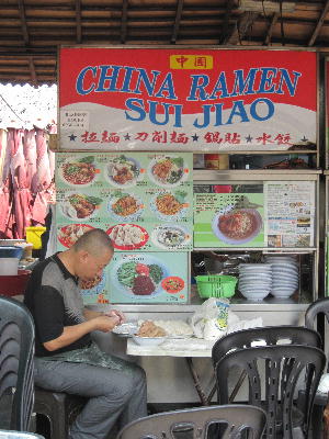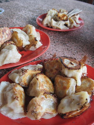 SS24(というエリア)にある絶品焼き餃子。マイブーム~♪巨大なコピ群(屋台村)の中の小さな屋台でありながらここの餃子は皮から手作りしている本格派。う~ん、あのもちもちした食感は今思い出しても食べたくなるっ!しかもマレーシアでは滅多にお目にかかれない「焼き餃子」が食べられる我々日本人にとっては大変貴重なお店でもある。チャイニーズのおじちゃんとおばちゃんが夫婦2人で切り盛りしている餃子専門店。営業は6:00pm~4:00amまで。最初にこの店を訪れた時は夕方5時頃だったかな?丁度仕込み中。店先のテーブルでせっせと皮を作るおじちゃんと具を包むおばちゃん。まだだよ、と一度は追い返されたものの名残惜しそうにじーっと生の餃子を眺めているとおばちゃんが特別に焼いてくれました。嬉しかったなぁ…。同じ場所の同じ屋台でありながら「昼と夜とで営業してる店が違う」という事はマレーシアの特に規模の大きなコピでは良くある事。もう一軒、別のコピで夜しか営業しない絶品「しょうが焼き」の店もあるのだが、これいつもタイミングが合わずまだ一度しか食べた事ない…。こちらもまぁ~思い出すと食べたくなるほど美味い!のでございますよ♪ムフフ
