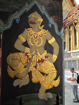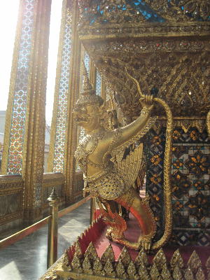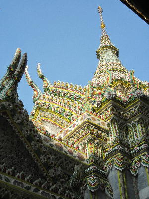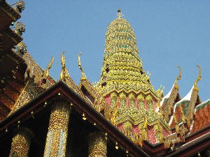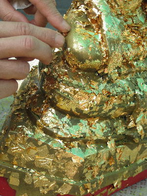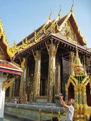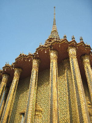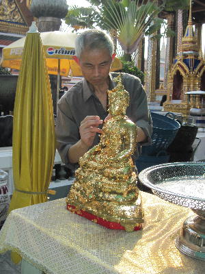 王宮へ入るには肌見せ厳禁。特に足を出してはいけないので男女を問わず長ズボンを履くかくるぶしまで隠れる布を腰に巻くかしないといけないのであります。忘れた場合は①王宮前のマーケットで布を買うか②入り口で布をレンタルするか③諦めて後日出直すか。4:00pmの閉門まであと1時間。急ぎ足で見て回る。煌びやかで繊細で美しい細工。鮮やかな色彩。圧倒されます。ここでも仏像に金箔を貼って願掛けする人々の姿が。運良く衛兵の交代式を見る事も出来た。川から眺める王宮も夕日を浴びてキラキラとこれまた美しい。