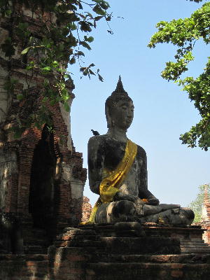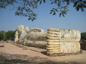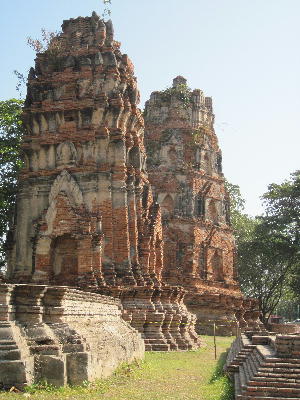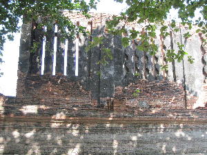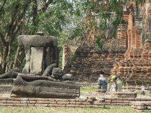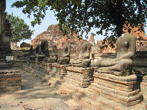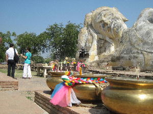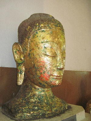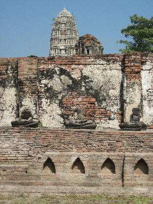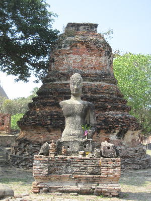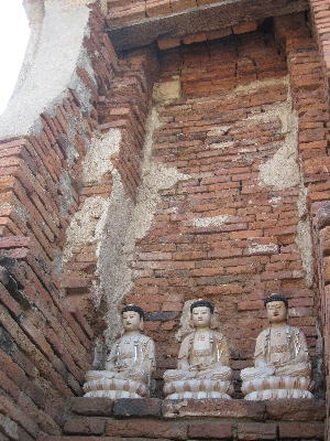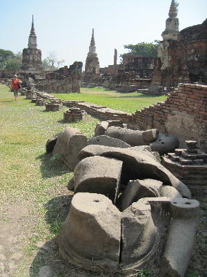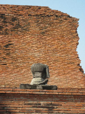 洪水の影響でアユタヤも大変な被害を被ったようだ。水没ラインはご覧のとうり。1メートル以上ある。遺跡もかなり傷んだようだが未だ修復には至っていない。実は当日までアユタヤの遺跡に行けるかどうか一般公開してるかどうか情報が錯綜しており、タクシーの運ちゃんに聞いても「行ける」と言う人と「まだ水に浸かってるから無理」と言う人と両方いたので本当に困った…。最終的にはネットの外国人向け旅行会社のHPでアユタヤツアーの観光状況を確認し、公開されている事だけは分かったので取りあえず行ってみる事にした。現場は欧米人のツアー客をちらほら見かける程度。空いてる~。人気スポットとは思えない程に観光客が激減しているらしく、遺跡への入場料はなんと無料!外国人は結構高いのでラッキーと言えなくも無い。複雑な心境。暫くは無料で公開するらしいです。(いつまでかは分からない…) 現場では浸水した遺跡のポストカードも販売中。転んでもただでは起きない逞しさです!でも不思議。遺跡って水に浸かった姿も神秘的でまた美しいのでありますよ。