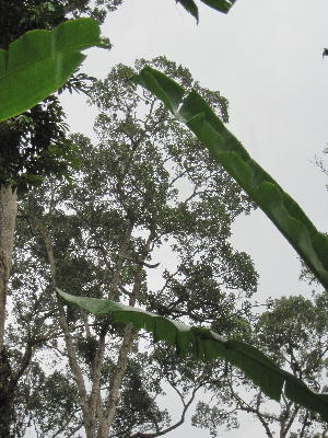 やっとの思いで目的地に辿り着いた頃にはスコールの時間。流石に雨の中拾いに行く事も出来ず、予めおじちゃんが収穫してくれたと思しきドリアンをお腹一杯ご馳走になりました。(水も買えず、昼抜きでのドリアンはちと苦しかったけどね…)高級品種ではないけど割りたては花のよう甘~い香りがして臭みも全く無く美味しかったです!樹齢100年、高さ50mの木から熟したドリアンがドサッ!と大きな地響きと共に落ちてくる