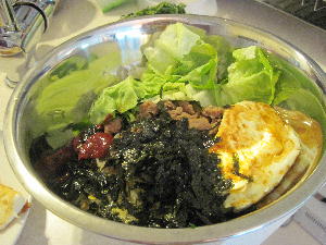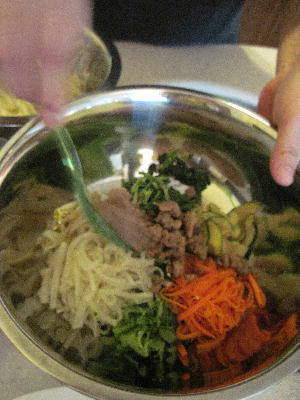 帰国前に韓国人のお友達が本場ビビンパの作り方を伝授してくれました。ありがとー!いやぁ~ビビンパは野菜が沢山取れるし保存は利くし万能で実に奥深い食べ物であるという事が分かりました。肝はごま油使いと混ぜ方!この2つのポイントを抑える事が非常に重要である事も分かりました。うんうん、味全然違うもんね~♪それから彼女の隠し味もちょっぴり教わっちゃいましたよ。ムフフ。コチジャンに砂糖とごま油を加える事で辛いだけじゃなくまろやかさが出るんだって!彼女曰く「日本人は混ぜ方が全然足りない!」そうで「このくらい?」と見せる事4回。でもダメ出し~結局彼女に仕上げ混ぜしてもらいました。本当に美味しかった!日本でも絶対作るからね。忘れないよ!カクテキも教えて欲しかったけど時間的に無理そう…これはまたいつかね♪