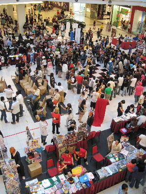 ショッピングモールのエントランスでちまぁ~っと行われていたコスプレイベント。でも一番盛り上がっていたのは対戦ゲームのコーナー。あとコミケとはほど遠いけど同人誌なんかもほんの少しだけ売ってました。でも…マレーシアのコスプレーヤーってば全然キャラになりきれてないっ!自分の体系とキャラのイメージがマッチするかまで考えてないみたいでして…。ブリーチやナルトのキャラだな、と服で判別つくのはまだ良い方であとは中途半端で何なのか良く分からなかったのが多かったなぁ…。これからってところでしょうか。やっぱ日本のコスプレーヤーは凄かったのね~成りきり度のレベルが違うっ!あ~懐かしの夏コミケ、今どんな感じなんだろう?