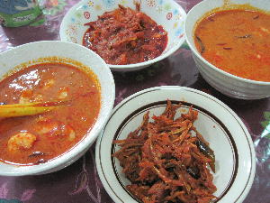 4月も半ば。現在新規で赴任してきた方々に色々と引継ぎ中。日常生活に必要なあれやこれやを、思えば去年自分達もバタバタしながら「一気に」覚えてすご~く疲れた記憶が…。1年はあっという間ね~ホント早いものです。今年はカウントダウンの年。帰国までに思い残しが無いよう今年も色々チャレンジして一つ一つの体験を宝物にしていくつもりです。そんなこんなで忙しい中ではありますが、英会話の先生がナシレマのサンバルソースのバリエーションを教えて下さるというので早速材料を揃えて下準備。いざレッスン開始なりっ!ソースのバリエーションは全部で4種類。①基本のサンバルソース(イカンビリス入り)②基本のサンバルソース+トマト③基本のサンバルソース(イカンビリス無し)+エビ+レモングラス+砂糖④基本のサンバルソース(イカンビリス無し)+エビ+レモンリーフ+砂糖、というラインナップ。因みにイカンビリスとは言ってみれば「いりこ」ですかしら?塩味効いてて癖になる美味しさでございます♪そのまま乾煎りしてポリポリっと!カルシウムばっちりです。私の中では帰国の際大量に買って帰りたい物リストのトップ3に入ってます。①②はチリが効いて少し辛めの大人の味。③④は辛い中にも砂糖が入っているので「タイ風エビカレー」か「エビチリ」という感じ。旦那は①、私と子供達は③がお気に入りでした。ココナッツで炊いたご飯と物凄く合うのでいくらでもいけちゃう!…でも気をつけねば。マレー料理は油たっぷりこってりで若干血液ドロドロが心配な中年の体にはキツイので。英会話の先生から「今度はヘルシーな日本の家庭料理を教えてちょうだい」と言われたので来週プレゼンする事に。何たって先生が「再現」出来なきゃ意味ないしなぁ…。何が良いかなぁ~肉じゃが?きんぴら?茶碗蒸し?胡麻和えか?(レシピも英語で書かなきゃダメだよね?)うーん悩む…