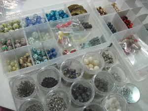 先月アクセサリーメーキングの初級講座(全6回)に縁あって参加。「材料の入手先」と「手持ちのリメイク法」を教えて下さるというコピーに惹かれて応募したこの講座。実は倍率物凄く高かったみたい。私の友達は選に漏れたというし…。先生も素人ながら(素人だから?)ツボをおさえたとても分かりやすい説明の仕方をなさるし気さくな先生の人柄もあって毎回楽しく参加。お仲間達の作品も参考になる。あっという間に講座も最終回。この日は先生が自宅から材料をどっさり持参。「皆さ~ん、沢山パーツ買ってね。この売り上げ全額日本への義援金寄付になりますから~!」というお言葉に火が付いたのか急に争奪戦が始まりまして…私も何だかんだこ~んなに沢山パーツ買っちゃいました!来週末日本人会でチャリティーバザーが開催されます。先生はここでも沢山のパーツと作品を販売するそう。勿論全額義援金寄付になります。「皆さんもいっぱい宣伝してちょうだいね」とは先生の弁。お任せくださいっ!講座は終了ですが皆「続けたいな~」という気持ちは一緒。で、サークル立ち上げる事になりました。認可下りれば再来週から。このめちゃくちゃな選別で買い求めたパーツで一体何作れるかなぁ?