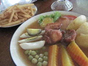 インドネシアでも様々な食事を味わってきたが毎日というほどお世話になったのがこの牛スープ。絶妙な塩加減が野菜とマッチして何とも良い塩梅。…というか唯一口に合う味ってとこだったかも。あとは延びたインスタントラーメンのアレンジバージョンとか甘い焼きそばとか~そんなもんばっか。そして衝撃の一品がこの「チキンソテー」。インドネシアの味付けは総じて甘い印象。(中には甘辛いのもあるけど…)メニューには「チキンソテー」と書いてあったので取りあえず「外れ無し」と踏んでの注文。ところがどっこいから揚げと茹でた野菜を皿に盛り付け甘いあんかけをた~っぷり(あんかけというかスープ?)乗せたこのプレートが運ばれて来た時は思わず「チキンソテーかい?」と確認したほど驚いた。地元の人はこれにチリソースをたっぷり乗せて食べるんだって。私は無理~!これってソロ独特の料理なのかな…