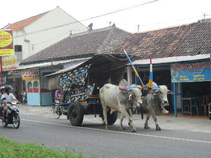 遺跡からの帰り道に水牛馬車と遭遇。車道をのっそりのっそり歩く水牛は近くで見ると想像以上に大きいという事が分かる。ガイドさん曰く「ラッキーでしたね。地元の人でも滅多にお目にかかれないですよ」との事。昔は水牛に荷物を運ばせるこの水牛馬車が主流だったそうだが、交通の発達に伴い今では数も激減したとか。大変貴重なこの1枚!何だか良い事ありそう♪