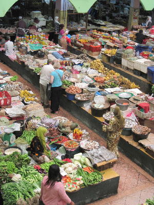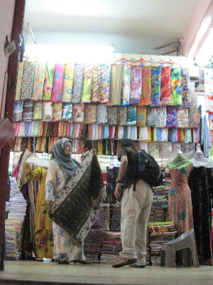 円形の巨大な市場。グランドフロアは果物・野菜・肉・魚などの生鮮食料品でこれらを囲むように上の階は乾物・タッパー・金物・玩具・アクセサリーと続く。(ザボン、凄く食べたかったなぁ…。)コタバルはバティックの生産地としても有名で最上階はバティックの生地問屋がずら~っと軒を連ねる。コタバルへ来たからにはバティックを買おう!という事で夫と子供達はシャツやブラウスをそれぞれ購入。私の分は無し。いいのいいのよ~私はジャンティン(バティックを描く道具)買ったから~♪