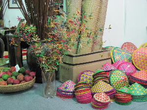 …という訳でブンブン村からKLに戻ってクラフトセンター(コンプレックス ブダヤクラフト)のイベント覗いて来ました。イメージ的には東京ドームや幕張メッセのイベントみたいな感じ。テーマごとに会場を大きく7つに分け、各会場の中でマレーシア全土から様々なクラフトブースが出展。中央のステージではマレーの楽器演奏や伝統舞踏などが時間ごとに披露されます。日本と違い「商談」という感じでは全く無く、入場料も無料で一般人がぶらっと気軽に立ち寄って楽しめて買える(しかも安い!)敷居の低~いイベントでした。夜10時までやってるのも有難いね~っ!バティックやソンケットなど布ブース、木彫りや籐製の椅子などインテリアブース、パンダンリーフで編んだ籠やマット笠のブース、サバのビーズ細工やパールのアクセサリーブース、皮製品や焼き物などじっくり見ようと思ったらとても1日じゃ回りきれないくらいっ!充実の1日でした。