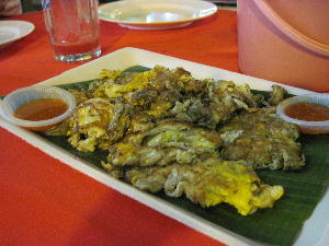 コタキナバル最終日の夕食はホテル近くにある生簀屋台でシーフードを。ここは生簀から好きな魚を選んで好みの調理法で料理してもらうシステム。少し時間がかかるが待ってる間に屋台の中にある他店の店員が様々なサイドディッシュを売りに来てくれる。魚は蒸した生姜醤油の比較的シンプルな調理法にしてもらったので牡蠣の卵とじ?お好み焼き?風の物とサバ野菜の塩&ガーリック炒めを注文。他に蟹のスープと海老チャーハンなんかも頼んだけど、この2品がダントツ激ウマでした~♪サバ野菜はここでしか食べられない(KLには売ってない…というか探しきれてない?!)のでお初でしたがニンニクの芽とニラと細いアスパラを足して割った感じですご~く気に入りました。また食べたいなぁ。