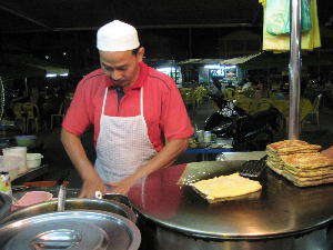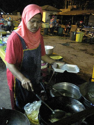 コタバルに着き遅い夕食をナイトマーケットで摂る。Gトレインで疲れ切った体に徒歩はキツイ。もうホテルの近くのマックで良いよ~!と心の中で叫ぶが「折角だから」と連れて行ってくれる先輩に申し訳ないのでついて来た。野外のコピでは珍しくどの店にもテレビが設置されている。KLでは見かけた事が無いからある意味新鮮である。猫かと思うほど大きなネズミも徘徊してるので衛生的には果てしなく?店によってスポーツ、映画、音楽番組など様々な中継を見ることが出来る為結構賑わってる。個人でテレビ持ってる人ってこの辺では少ないのかな?イカ売りの若い母親の屋台、ロティの屋台、フライの屋台など12時近くだというのにマレーの女性は皆良く働く。ここでは鯵のカレー風味のフライとコタバル名物と言われる青い花で炊いたご飯のナシレマを食べてみる。ナシレマはイマイチで鯵は◎!鯵フライ屋台のおばちゃんはおまけしてもう1匹付けてくれました!ムフフっ生き返る美味しさ♪挨拶のみの片言マレー語でもおばちゃんの心に届いたみたい。嬉しいねぇ~。今年はちゃんとマレー語勉強しようかな。来週から講座受講しようかな。