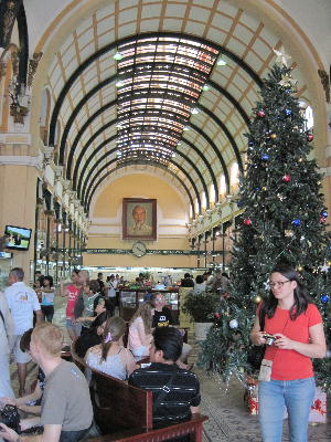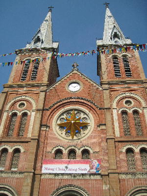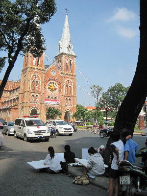 今回の旅行ではホーチミンに滞在し様々な建築を見て回るのも目的の一つ。クリスマス初日は聖母マリア教会へ。日曜日の朝早かったのでクリスマス礼拝の真っ最中。フランスから運ばれて造られたというレンガ一つ一つの色合いが大変美しく歴史を感じさせる。美術や建築を学ぶ学生なのか教会の前でスケッチをしている。この風景だけ切り取ってみると実にパリっぽい。フランスでも街の至る所でスケッチする人々を何人も見かけた。そんな雰囲気が漂う。何組ものカップルがウエディングのアルバム撮影に訪れるこの教会。この日も午前中で2組。次の日は3組。アオザイのモデル撮影も行われていた。