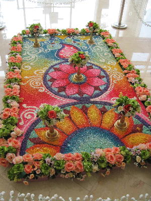 11月5日はディパバリ。ヒンズー教の祝日で光の神を祭るのだそう。この時期どのショッピングモールでも蝋燭や花と共に孔雀や象などヒンズー教の神々をモチーフにした美しい床面装飾を見る事が出来る。砂絵かと思ったこの装飾は良く見ると「米」を染色した粒で作られている。そしてハリラヤの時と同様、先週からディパバリセールが繰り広げられており11月の週末はオープンハウスを行う所も多いらしい。(英会話の先生に招待されているのでパンジャビを着て伺おっかなぁ…と思案中)そんなこんなでインド人街はきっと面白い事になってるんじゃないかなぁ~来週あたりいってみようかなっ!?マレーのハリラヤ、中華系マレーのチャイニーズニューイヤー、インド系マレーのディパバリはマレーシアで最も重要視される国を挙げての祝日なのだそう。結局2ヶ月に一度位の頻度で何かしらのイベントがありその度にセールがあるという事も段々見えてきた。マレーは「いつでも安い」のであった…。