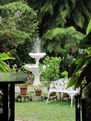 スモークハウスホテルの庭。ぐるっと一周散歩して回る度に様々な表情を見せてくれる。雨に濡れても朝日を浴びても草や花々を美しく見せてくれる。夜にはライトアップのテクニックもあってか何だか妙に落ち着く心地良い空間が広がる。噴水あり。ブランコあり。鳥小屋あり。小さなモニュメントも幾つかある。でどの角度から見てもちゃぁ~んと絵になる!さすが日本からわざわざガーデニングの研修に来る人がいるだけの事はある。イングリッシュガーデン恐るべしっ…。