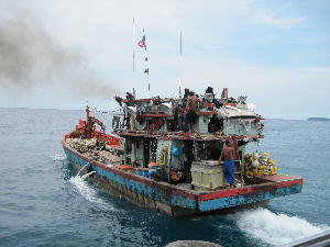 ティオマン島で見かけた漁船。近くで見ると海賊船みたいだった…桟橋につけて釣ってきたばかりの魚を島民達に直接販売しているらしい。実はアドバンスの講習を受けに行ったんだけど海が時化てて結局今回は1本しか潜れなかった…。モンスーンの影響でここで潜れるのも今週末が最後。あと1チャンス…。ダメなら来シーズンまでお預けです。何とかアドバンスはクリアしておきたいんだけどなぁ。照る照る坊主を作ってお祈りするかぁ~