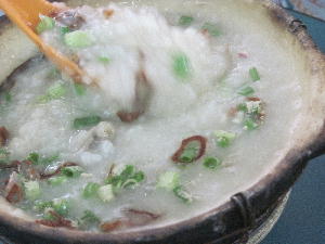 朝市エリアで発見した新種のクイチャオ。こちらは焼きうどんの様な味と食感。試しにスープのも試してみたけど、クイチャオはそれ自体に味が無いので相当味の濃いスープじゃないと美味しく感じられない。スープの方は残念ながら薄すぎてあまり美味しいと感じ無かったけど、焼きうどん風の方はとっても美味しい!隣は蛙のお粥。味は普通。魚のようなダシの味で生姜がピリッと利いていて食べ易い。蛙もそんなに入ってなかった…?骨付きの小さいぶつ切りの肉片がそうかな?