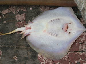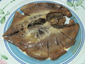 夫が職場の同僚と初めての海釣りに挑戦。で持ち帰ったのがエイとキスとイシモチと何か分からないけど食べられると言われた魚。この日は大漁だったようで、皆でとっても楽しい体験が出来たとホクホク顔で大喜び。そうそう、何事も最初の印象が大事よね~!特に今回は海洋学博士も同行して下さるというので私も安心して「行ってらっしゃ~い!沢山釣ってきてね~」と送り出した次第。専門家にレクチャーを受けながらの釣りはビギナーにとってこの上ない好条件。本当は下の子も行きたがっていたんだけど学校行事と重なってしまったのでまたの機会に。前日博士と一緒に道具を買ってきた夫。釣り竿を2本とリールを2個買って100RM(3000円位かな?日本で買うより安いと思うなぁ…)小さい魚だったけどいっぱい連れたし遊ぶ道具としてはかなりリーズナブル。釣れたエイをどうするか迷ったという夫。そうだよ、だってエイって確か尻尾に毒持ってたよ~!結局博士の「食べられますよ。レモンに漬けて煮付けにすればすごく美味しいですよ」の言葉と尻尾をカットしてくれたという事で持ち帰って来た夫。2匹のうちの1匹を試してみたいという同僚にあげて我が家では早速レモンを購入して煮付けにチャレンジ。とは言っても食べる所は殆ど無い…。でもエイヒレって日本では高級な珍味だったのを思い出し、ヒレの間の肉をこそぎ取って食べてみる。この機会を逃したら一生エイなんて食べる事も無いだろうしなぁ…と噛み締めながら味わう。美味~!意表を突いて大変美味しゅうございました♪