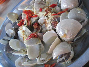 ランチのお目当てはやっぱり蟹ちゃん♪シンプルに蒸した蟹とアサリを頼んでみました。蟹の名前は分かりませんが、とっても肉が詰まってて美味しかったです!何でも日本では滅多にお目にかかれない高級蟹の品種だそうで(日本で食べると一杯1万円以上するらしいです…)わざわざフェリーに乗って食べに来る価値はありました。アサリも塩と生姜が利いていて凄く美味しかったです。日本のアサリと品種が違って殻が厚く大きい!少し蛤に近い感じがしました。そうそう、海老チャーハンも薄味でお勧めですよ~。