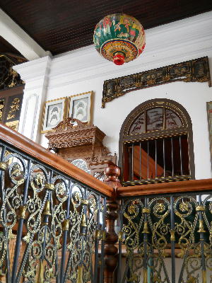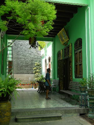 プラナカン・マンションは屋敷全体がアンティークのコレクションハウスになっている感じ。建物に施された装飾・内部の床に敷き詰められたタイル・中庭の壷や照明・階段の手すりや窓枠・食器やベッドに至るまで1日中見ていても飽きない素晴らしいコレクションが沢山ある。同じ私設博物館でもマラッカのヘリテージ博物館は写真撮影NGだったけど、ここはOK。入り口にミネラルウオーター配布のサービスまである。ペナンへ来たらここともう1つブルーマンションは抑えておきたいところ。但しブルーマンションはホテルとしても営業してるため、見学ツアーは11時と15時の2回のみ。今回は時間が合わなかったので外観だけの見学。それでもコバルトブルーに細かい装飾が施された屋敷の外観はひと際目を奪う美しさがありました。