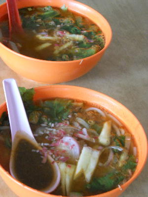 ペナンに来たらラクサを食べねば!予めトライショーのおじいちゃんには伝えてあったので、ペナンで一番美味しいラクサのお店に立ち寄ってくれた。どこが入り口?というほどに小さいお店。この店のラクサを買い求める人で道路には長蛇の列…。立ち食いしてる人も沢山いる。やっぱり人気ある店なんだなぁ~。私達も立ち食いか?!と思っているとトライショーのおじいちゃんが向かいの店の席を確保。「ここに座って待ってろ、運んでくるから」と言うではないか!ムムッ。おじいちゃんはどうやらここの常連らしい。この店ばかりか向かいの店にも顔がきくようだ。親しげに話をつけ、すぐにラクサ到着。おじいちゃんすご~っ♪ついでに名物デザートのチャンドルも進められ試してみる事に。ラクサは魚の出汁が効いててあっさり系。とっても食べやすい。そんなに辛くも無く(辛いのは辛いんだけど…)様々なスパイスとライム&香草などの味が複雑にブレンドされた深みのある辛さは後を引きます。またチャンドルですが冷たいココナツ風味のカキ氷に豆と緑色の短い麺?のようなものが入っていまして夫には評判良かったです。でも子供も私も個人的にココナツ風味が苦手なので無理でしたが…。