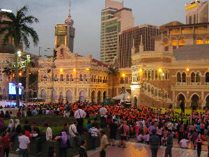 年に一度国を挙げて盛大に行われるマレーシアのお祭りを見てきました。普段一般人は入れない独立広場前の芝生に設置されたステージを中心にマレーシアの様々な民族が集結し民族衣装を着てパフォーマンスを行います。その後パレードしながらライトアップされた街中を踊りながら練り歩きます。屋台も食べ物ばかりでなく各地の物産などバラエティー豊かでユニークなものが沢山出展されていました。物凄い人が繰り出すので取締りの警察官の数も多かったです。中でも白バイの女性警察官は背が高い美女でして、白い制服姿はひと際目立ってかっこ良かったです。
