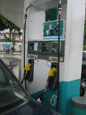 ガソリンスタンドでの給油はセルフ主流。PRIMAX95と黄色で書かれているのが日本でいうところの「レギュラーガソリン」にあたるそうです。日本と少し違うのは先ず事務所に行きどのくらいの量を給油したいか申告、車に戻って事務所が給油口のロックを外すのを待って給油開始。申告した量に達すると自動的に止まり、事務所で代金を支払うというシステムです。この間常に周りに気を配り襲われないようドキドキしながらの作業なのでとっても神経使って疲れます。実際に日本人(特に女性1人の時に狙われる)が強盗に襲われて怪我をしたという話も聞いているのでとっても怖いです。怖いといえば交通ルールが無い?(あるとは思いますが皆無視してるようなのであっても無いような感じなんです…)マレーシアの運転事情はもっと怖いです。基本的に車優先。歩道&横断歩道はありません。車線もはっきり引いてないので二車線なのか合流なのかどれがどれだか分からない所に車がどんどん我先にと割り込んでくるのでぶつかりそうになります。あと、クラクションを鳴らす習慣が無いようであまり音を聞いた事がありません…。歩行者が渡ろうと手を上げても減速は無く、渡る時には死ぬかもしれない恐怖心と戦いながら足を踏み出さなければなりません。そのストレスがストレスを呼び引きこもってしまう人も多いとか。信号も大きな交差点には設置されているものの壊れて役に立たないものが多いです。そんな時は周りを見てソロソロと様子を伺いながら発進。何といっても一番怖いのはバイクたち。右からだろうが左からだろうが追い越していくし、反対車線からのUターンでぶつかりそうになるし、信号無視は当たり前。まるで「おさるのジョージ」がバイクに乗っていたずらしながら街中をパニックに陥れる絵本の世界そのもののイメージです。そしてこの国の道路は一方通行の作りになっているんですね~。なので来た道をそのまま帰ると言う事が出来ないのです。ナビは必須!命綱です!そしてカメラも常に携帯!これをしておかないと事故を起こした時に逃げられます。この国ではナンバープレートでは無くフロントガラスに貼ってあるピンクのステッカーを撮影しないと意味が無いからです。このピンクの紙は国が車ごとに発行しているナンバーが記載されていてしかも郵便局で税金を払わないと貰えないステッカーなんだそうです。違法でない車の証明みたいなものですね。そして「現地の人を万が一引いてしまった時はドアをロックしてその場を素早く立ち去るべし」という会社のレクチャーをご主人が受けたという商社の奥様から聞いた話を思い出すと怖くてとてもじゃないけど運転する気が失せるのです…。だって外国人が現地の人を引いた現場を見つけると周りにいた人達総出で車から引きずり出され殴り殺されるらしいですから…。そんな事より何より先に救急車だと思うのですがね…。