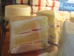 コンドの近くに最近出来たという小さなケーキ屋さん。ケーキ屋さんといってもマフィンとクッキーとチーズケーキがあるだけなんですが…。バターケーキやチョコレートケーキ、チーズケーキなどある程度日持ちする甘~いケーキが主流のこの辺では珍しくイチゴのショートケーキも置いてあると聞き、誕生日ケーキの下見がてら覗いてみる事に。以前カフェで試しに食べたチョコレートケーキは子供曰く「パソコンの味がする」パソコン?何言ってるの~と食べてみて納得。つまり冷蔵庫の中の臭いが移ったんですな。長期間置いてある証拠。気持ち悪くなって処分した経験があります。夫の誕生日に50RMも出して買ったホールのケーキはクリームが塩味?というか油っぽくて不思議な変な味がしたし…。ここへ来てケーキに関して良い印象はありません。それにしてもこんな風に1ピースずつラップで包まれたケーキなんて見た事ありません。それにイチゴもクリームもデコレーション無し。これ途中…?!いやいやフルーツは別付けで自分でトッピングするシステムなのか?ムムッどうやらこれが完成形らしい。これで10RMは高いだろ~!ホールで買ったら一体いくらよ~。こんな衝撃的な売り方初めて見ました。結局マフィンとチーズケーキを試しに買って食べてみましたがまぁ普通でした。やっぱり日本のケーキは美味しい上にとっても美しかったんだなぁ~としみじみ感じる今日この頃。帰るまでケーキはお預けかな…。