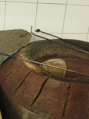 ナンは夜(夕食)の食べ物だという事をここへ来て初めて知りました。そしてナンには無限にメニューがあるという事も。だからランチメニューには無かったんだ…。今回はタンドリーチキンが凄く美味しいと評判の別のカレー屋さんで夕食を食べてみる事に。タンドリーチキンは付けあわせの紫小玉葱のスライスと一緒に食べると美味しいと聞き実践。おっしゃるとうり!もう玉葱無しでは食べられません~。左の窯でナンとタンドリーチキンを焼き上げるんですがとっても香ばしいのに柔らかく仕上がるんで驚きます。ナン・チャパティ・ロティそしてもう一つトーサイというのがあります。ここで食べたのはトーサイティッシュ。ティッシュのようにうす~い生地をとんがりコーンの様な円錐形に仕上げた甘いお菓子です。リーフパイ?みたいな味です。高さ50cm、直径は頭がすっぽり入る位ですからインパクト大です!先に述べた3種類同様、トーサイにも厚みや味に色々とバリエーションがあり様々なカレーに合うよう作られているのを知れば知るほどインドカレー(食文化)の奥深さを感じます。