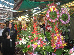チャイナタウンの中にある花屋さん。母の日を前日に控え店頭でせっせとアレンジを作っている。母の日に花を贈る習慣はどこも同じなんだぁ…沢山準備されている。数軒並ぶ花屋は店のカラーを打ち出して静かな闘志を漲らせながらアピールしてくる。ぬいぐるみやバラをメインにしたベーシックなアレンジ。小さなテーブルアレンジ。でもでも一番の変わり種はこのリース。迫力満点で蘭を使っているからどこかハワイのレイのような雰囲気もあります。日本では見た事が無いので思わずパチリ!所変わればアレンジも変わるんだな~こんなの貰ったら感動するな~と妙に新鮮でした。