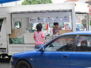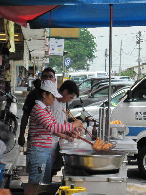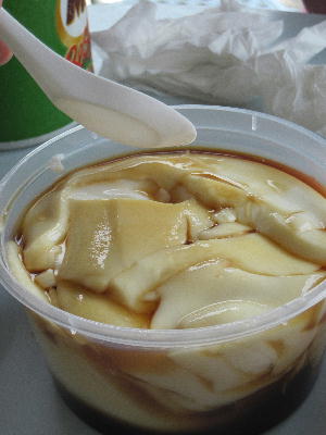 小さい屋台が4件ほど並ぶコピティアム。ここのえび麺はこの辺では一番美味しいと評判らしいです。その前に揚げパン屋さんと豆腐屋さんが出店。雑貨屋さんも新聞と雑誌が豊富です。DVDはものすご~く怪しい感じだけど。揚げパン屋さんはとっても繁盛。見てるとこまめに油も変えてます。向かいの豆腐屋さんも買ってたし。温かい豆腐もすご~く美味しかったです。日本のよりさらっとあっさりめ。生姜醤油と言いたいところを何と黒糖蜜をかけて頂きます。こんな食べ方があるんですね~。家に直帰なら確実に買って帰るんだけどなぁ…。残念!また出会えますように。