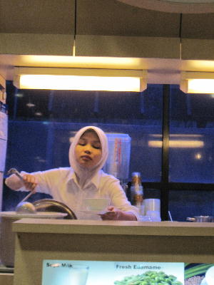 フードコート内にある豆乳屋さん。ペットボトルで販売してます。驚いたのはキャッチコピー。乳癌にならないために豆乳を!的な宣伝文句。私も可愛い店員さんの笑顔につられて温かい豆乳団子を購入。もちろん「ノーシュガー」で。これはホッとする美味しさです。しかも日本人には丁度良いサイズ。メニューの中には「EDAMAME」があり、もしかしてグリーンの豆乳がえだまめなのかな?今度買ってみようかな。若い女性に人気のお店らしいです。納得。