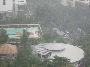 午後3時過ぎになると突然あたりが薄暗くなり雷が鳴ってものすごい雨が降り出す。これがスコールか。どうやらマレーシアは地震がない分、雷による停電が頻繁に起こる所らしいです。ブレーカーもよく落ちるって聞いてはいたけど…